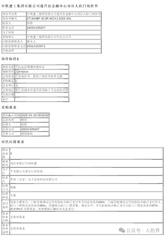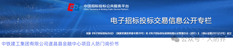中铁建工集团有限公司遂昌县金融中心项目人防门询价书重庆市